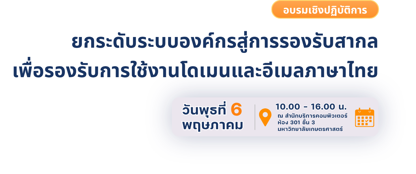 ปัจจุบันประเทศไทยมีการใช้งานชื่อโดเมนภาษาไทย (.ไทย) และอีเมลภาษาไทยเพิ่มขึ้นอย่างต่อเนื่อง อย่างไรก็ตาม ระบบเว็บไซต์และระบบอีเมลจำนวนมากยังไม่รองรับ Universal Acceptance (UA) อย่างสมบูรณ์ ส่งผลให้ผู้ใช้งานไม่สามารถกรอกอีเมลภาษาไทย หรือใช้งานโดเมน .ไทย ได้อย่างถูกต้อง